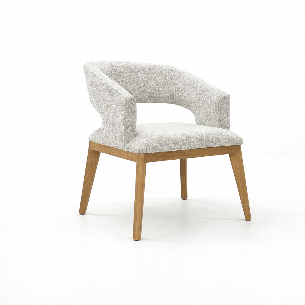 This elegant dining chair combines clean contemporary lines with lasting craftsmanship. Upholstered in an easy-clean fabric, it offers both comfort and practicality for everyday living. The chair is built on a solid wood frame for durability and stability, while the solid oak legs add warmth and natural character. Designed to complement a variety of interiors, it is a timeless piece that balances style, comfort, and quality.